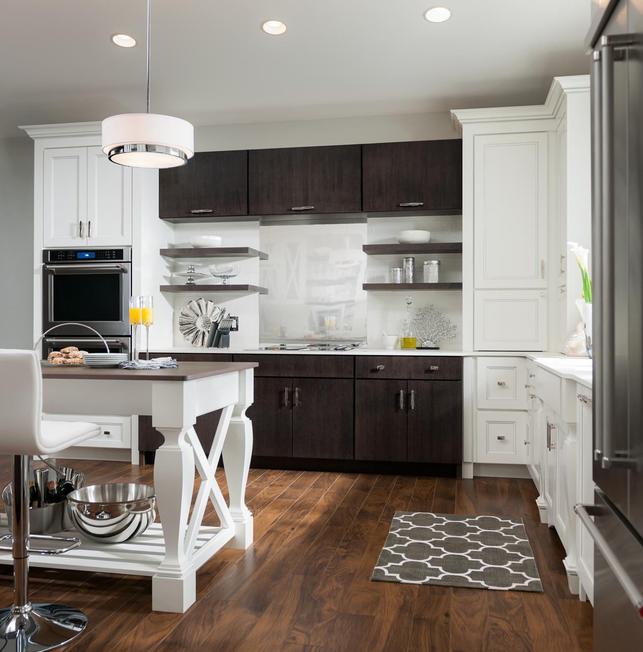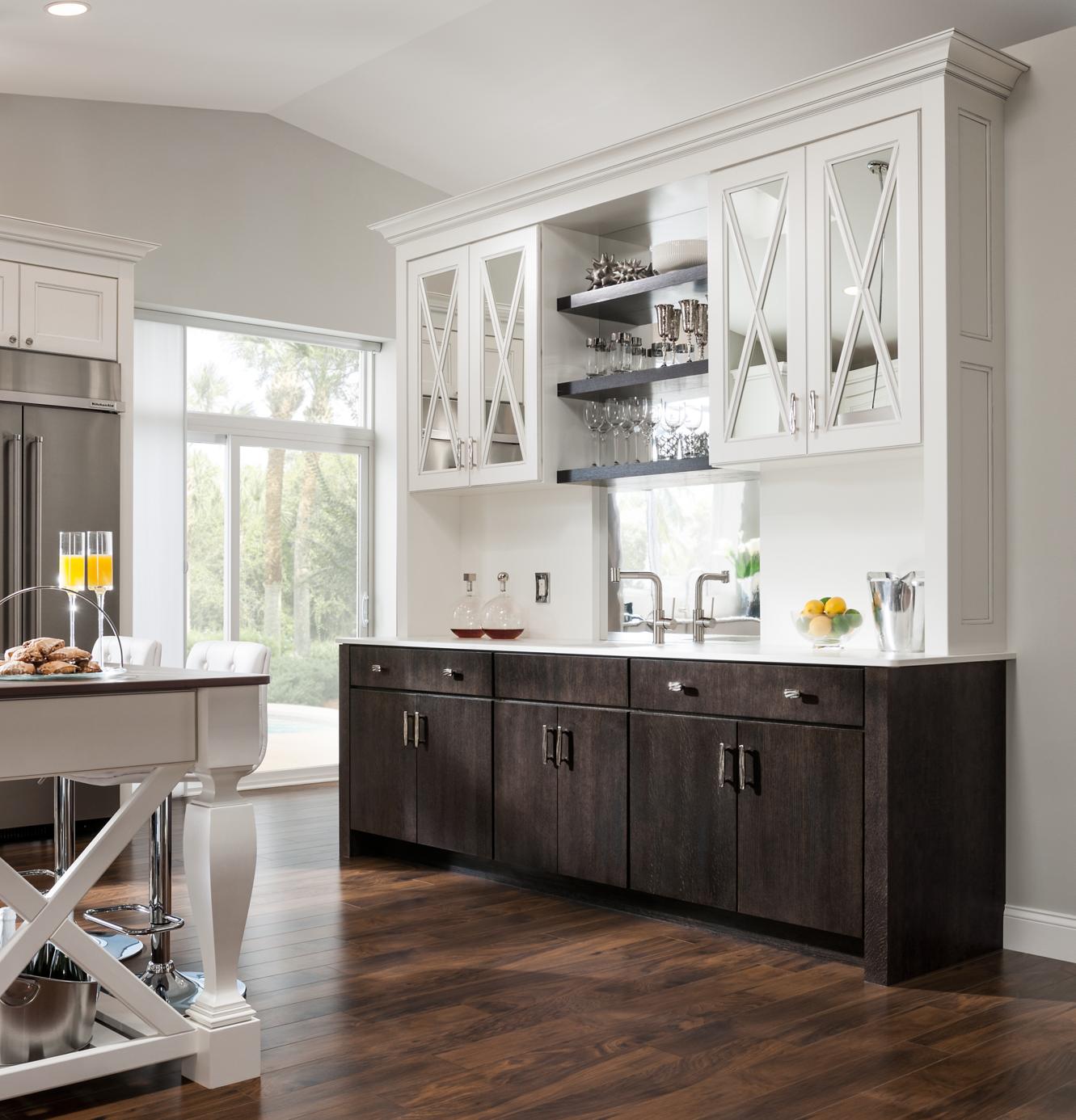 (Gold) Ellison Flat Panel in White Icing with Pewter Highlight; Bella in Smoke on quartersawn oak