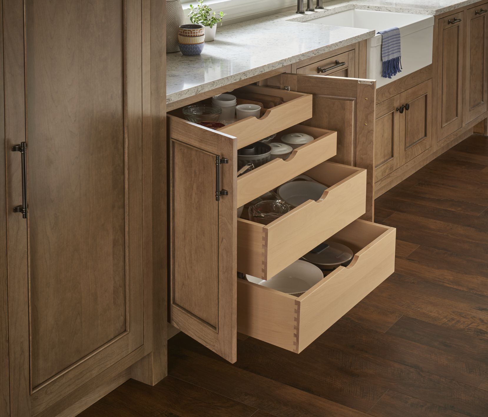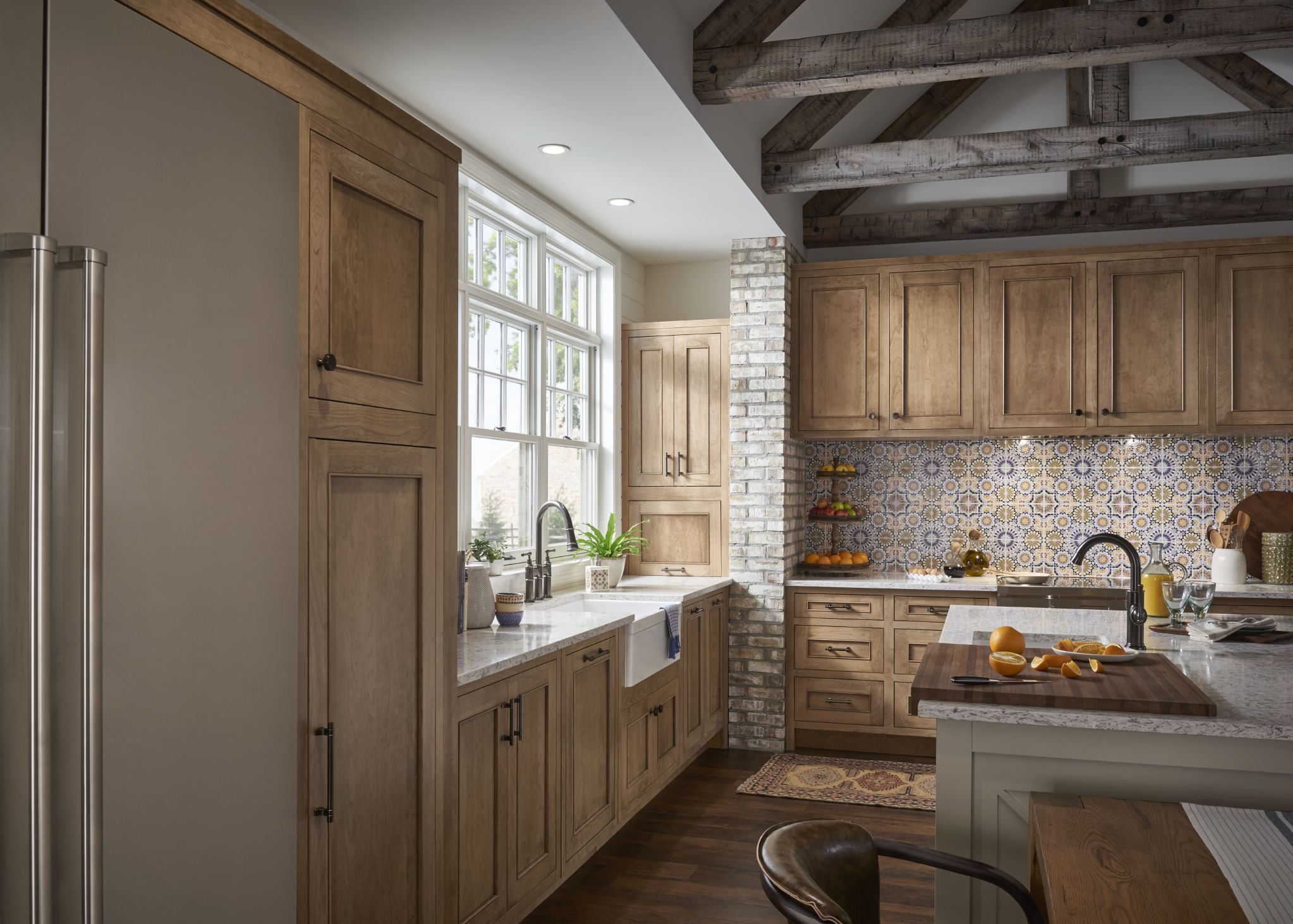 (Platinum) Loxley in Cappuccino with Burnt Sienna Glaze & Highlight on cherry and Chai Latte on maple; Island Ends in Amesbury.