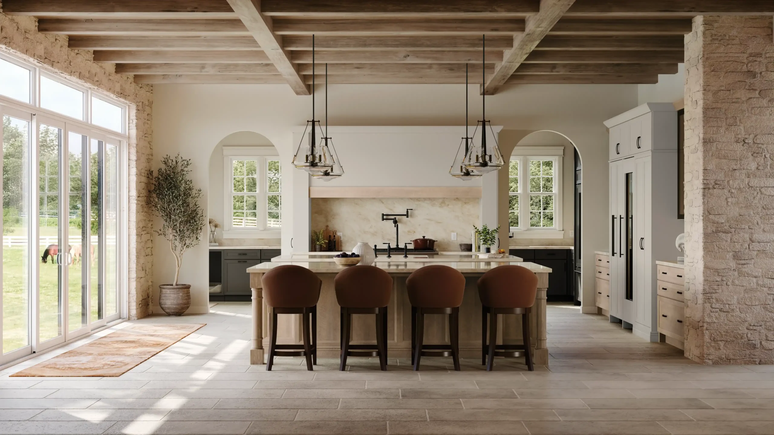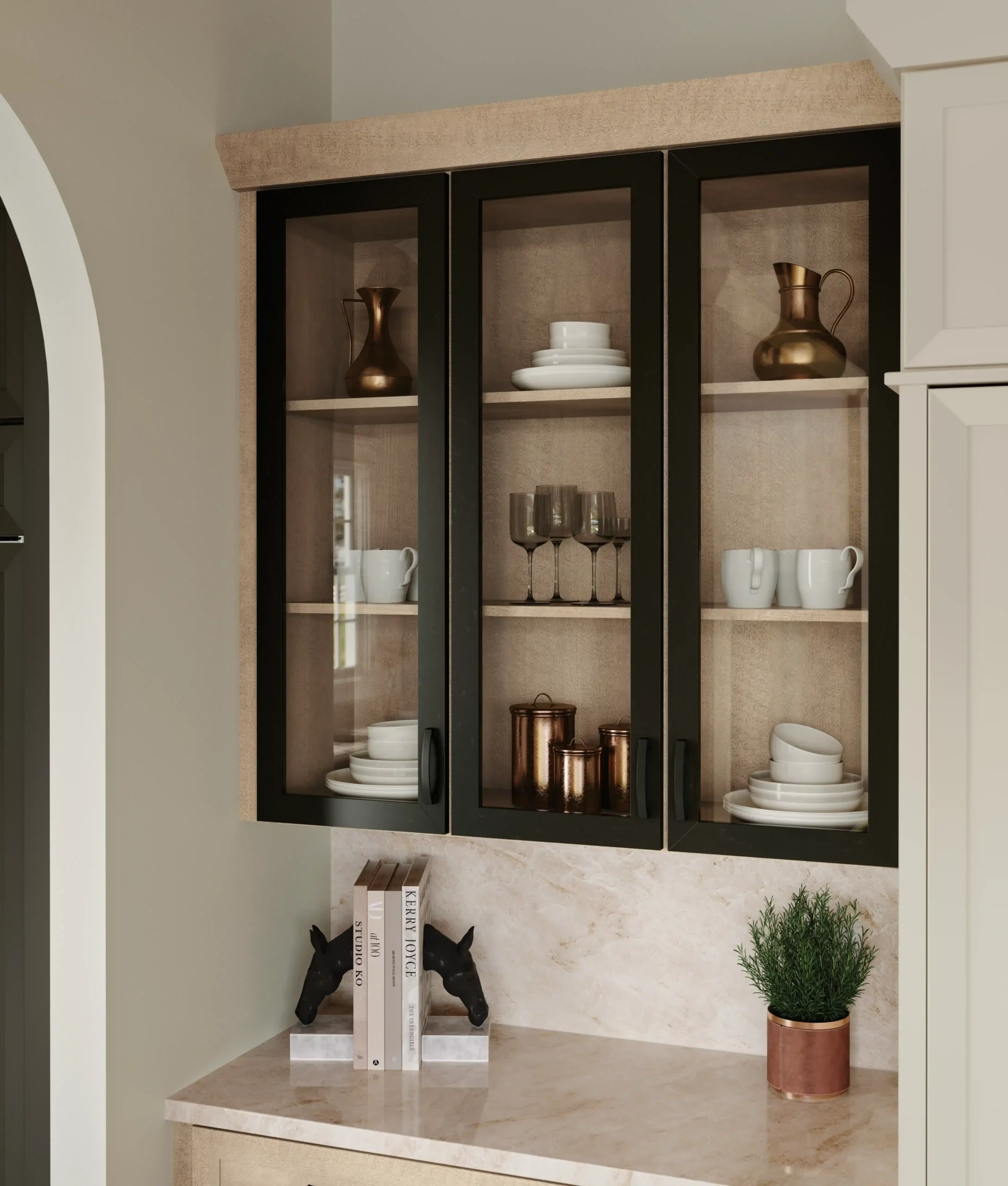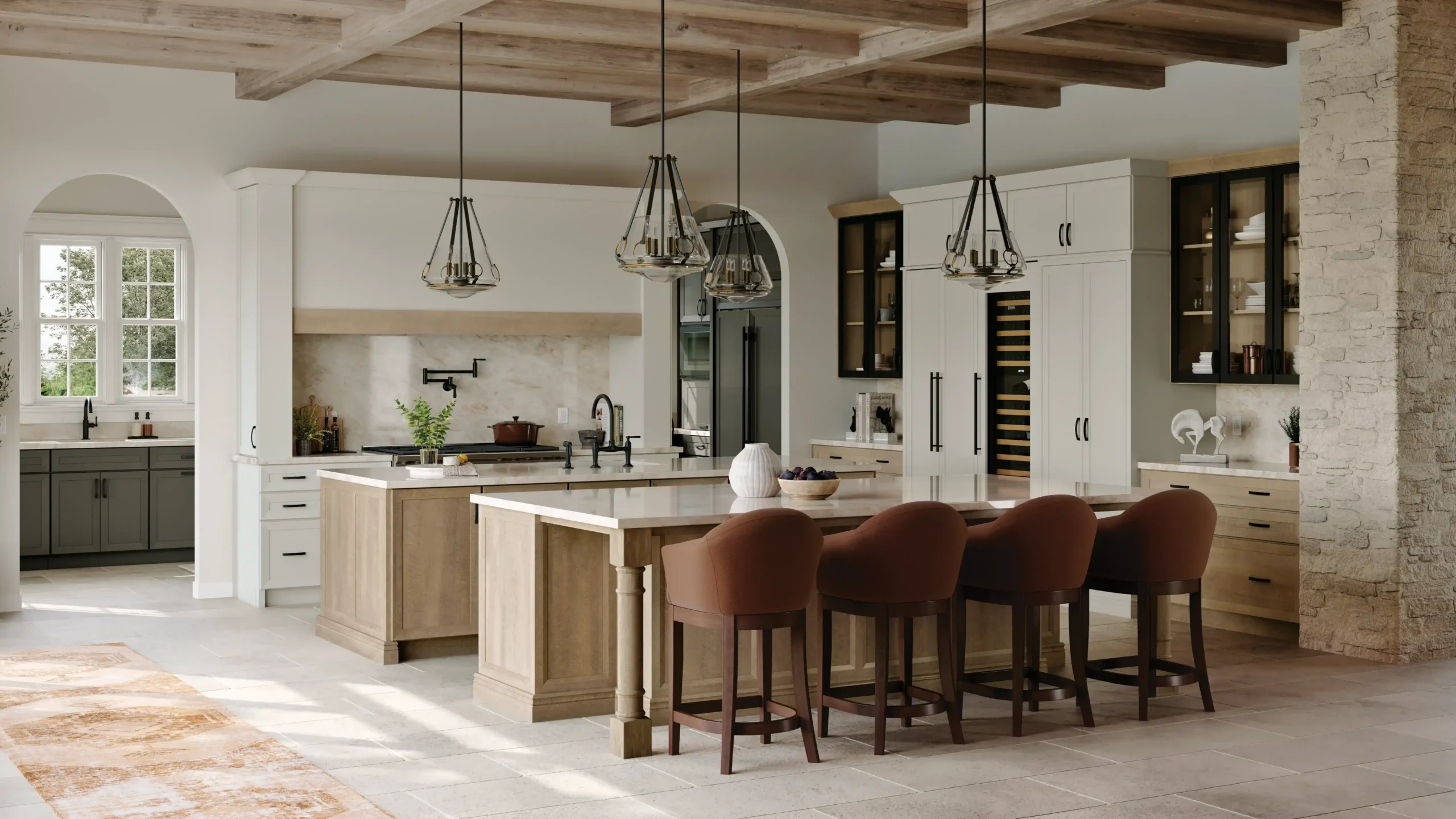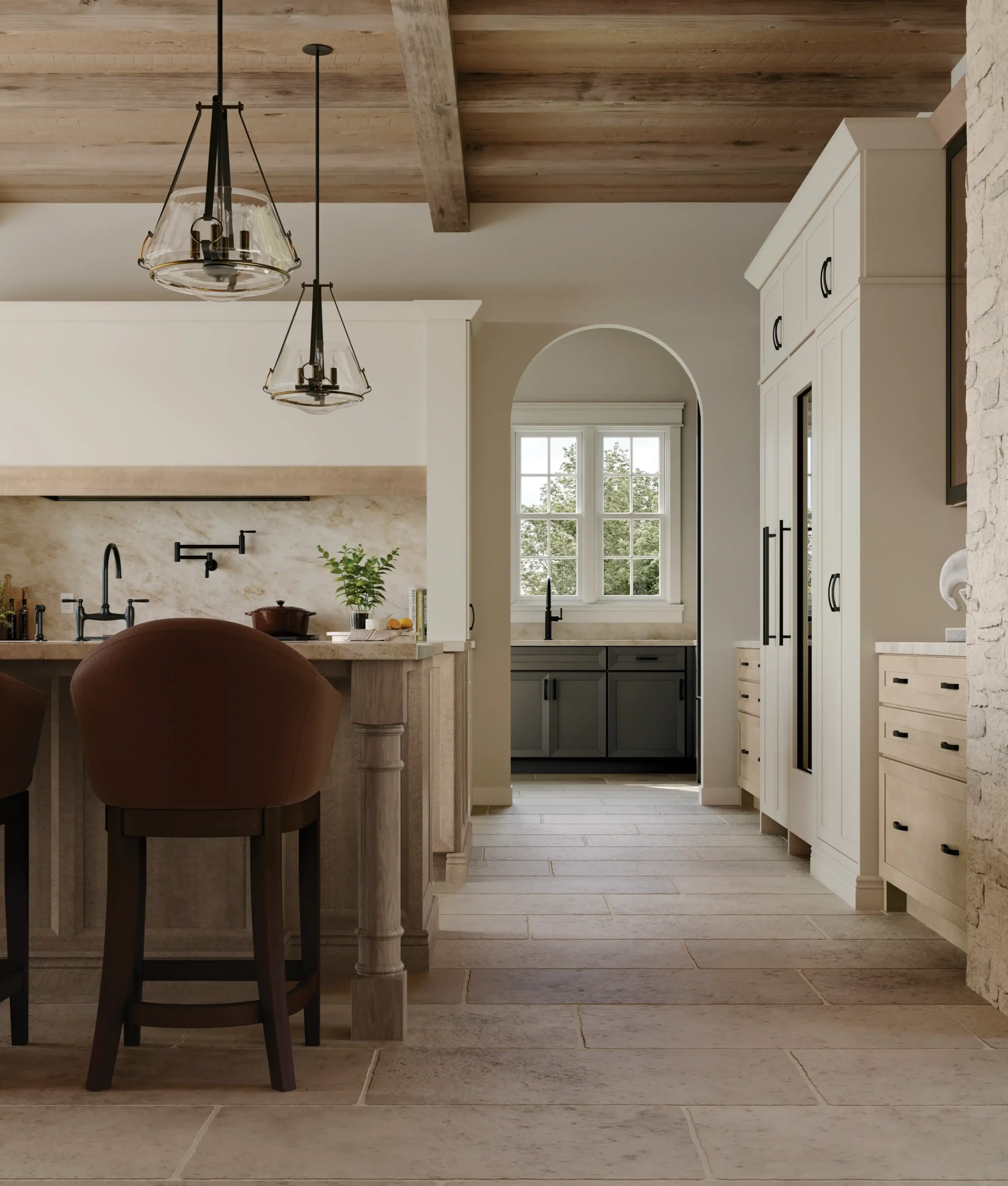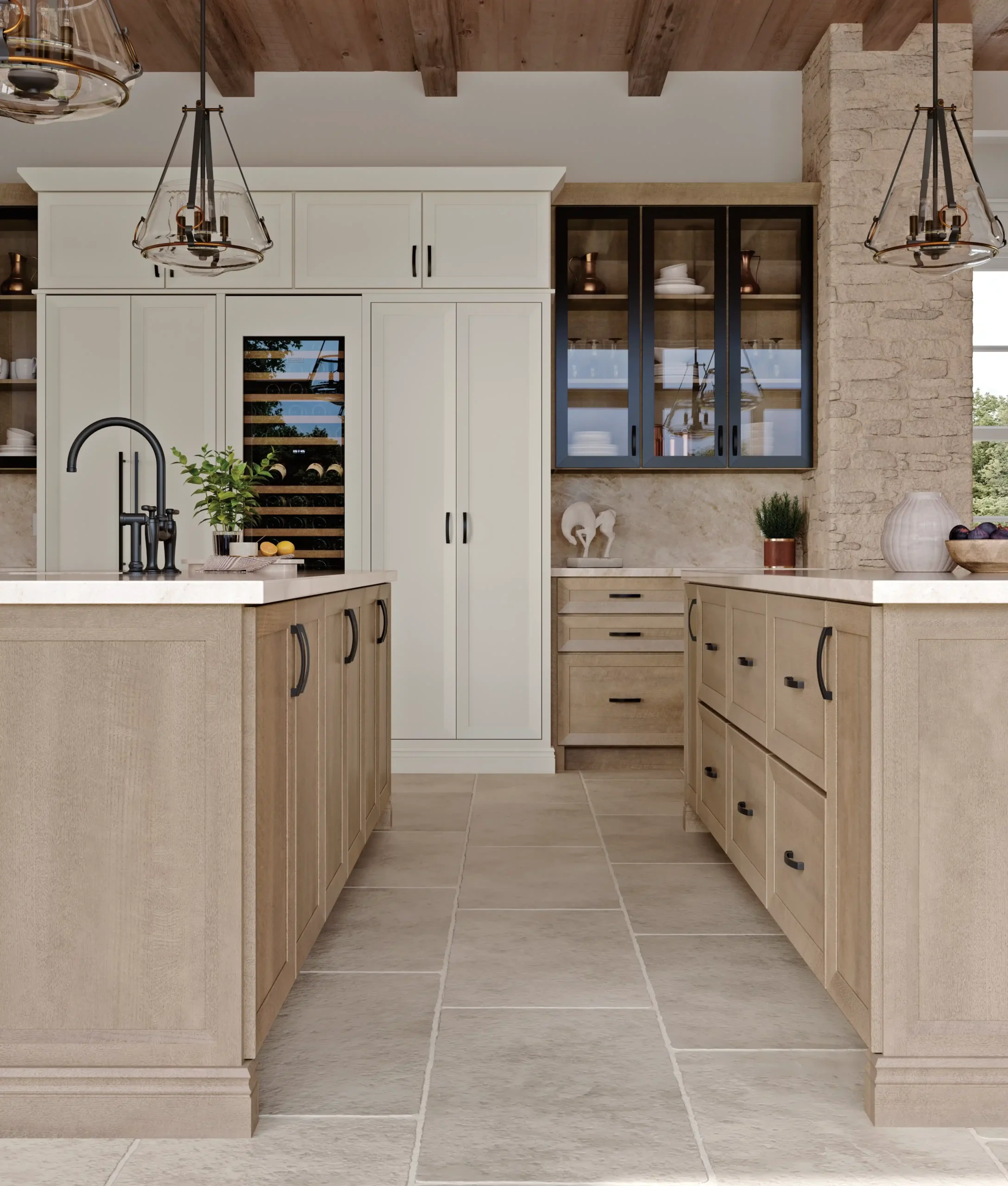 Hospitality—effortlessly orchestrated. Embodying Equestrian Chic influences in a masterful dual-purpose design, our Harlan door features in both Irish Crème and Cavern anchoring this kitchen tandem.
