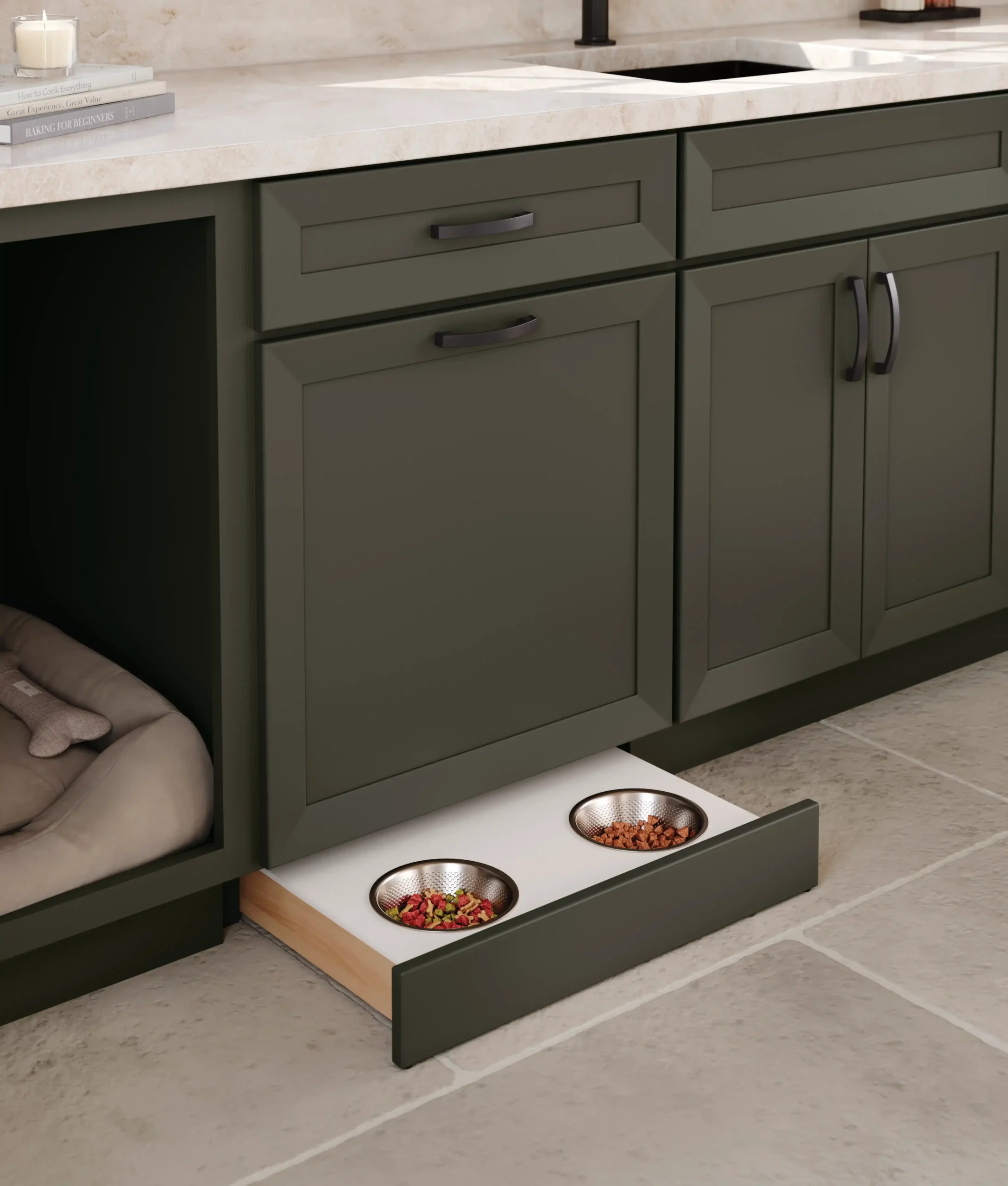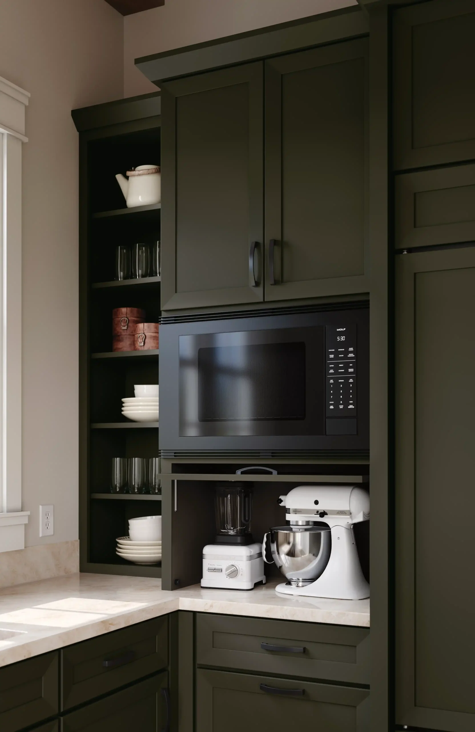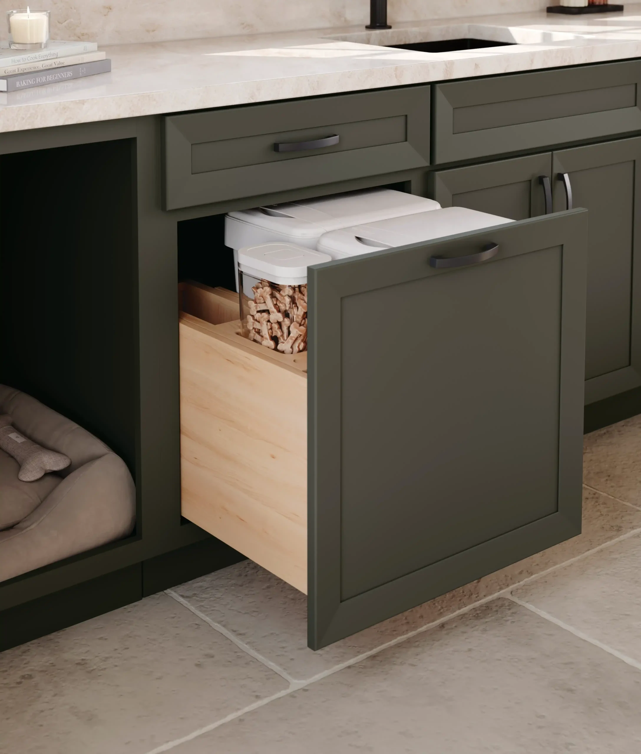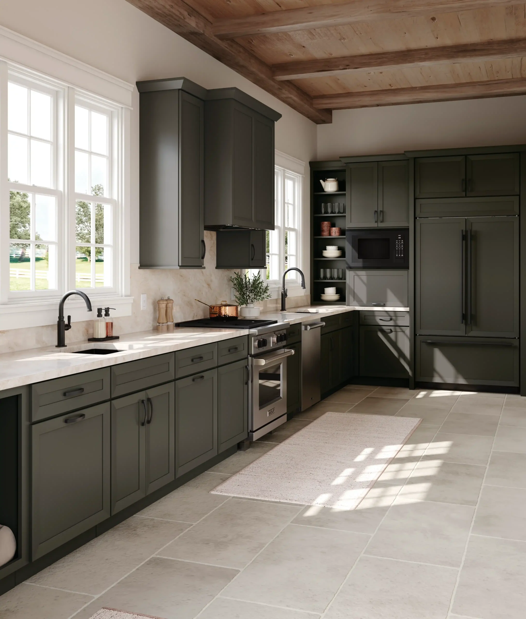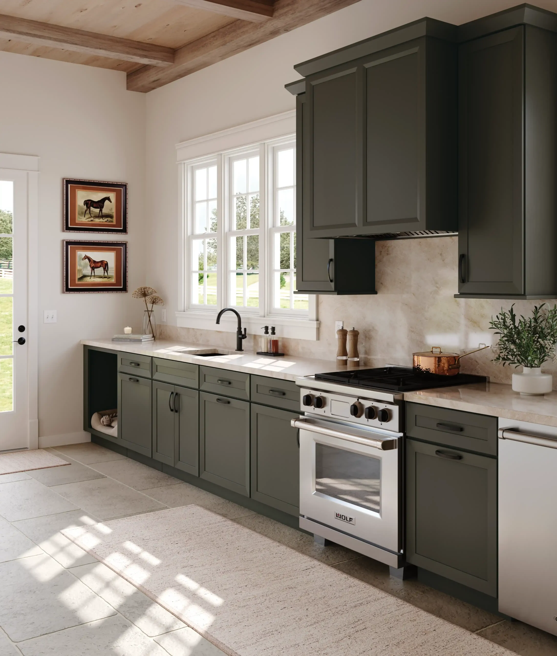 Hospitality—effortlessly orchestrated. Embodying Equestrian Chic influences in a masterful dual-purpose design, our Harlan door features in both Irish Crème and Cavern anchoring this kitchen tandem.