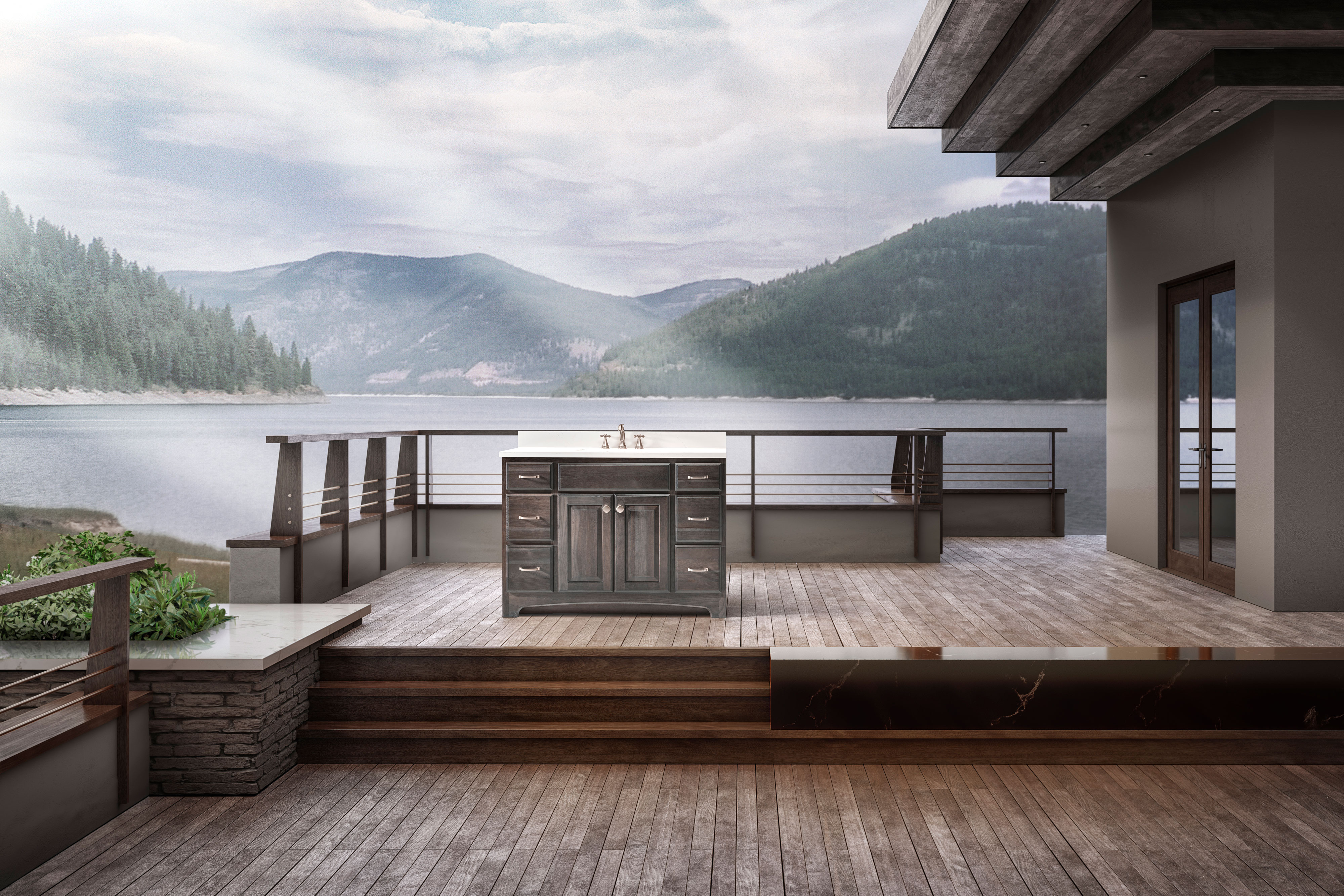 Retreat to your favorite outdoor destination while soaking in the warmth of your rustic tub. The Terrace collection provides an escape to a lakehouse, where time ticks slowly and the warmth and beauty of nature invades your senses.