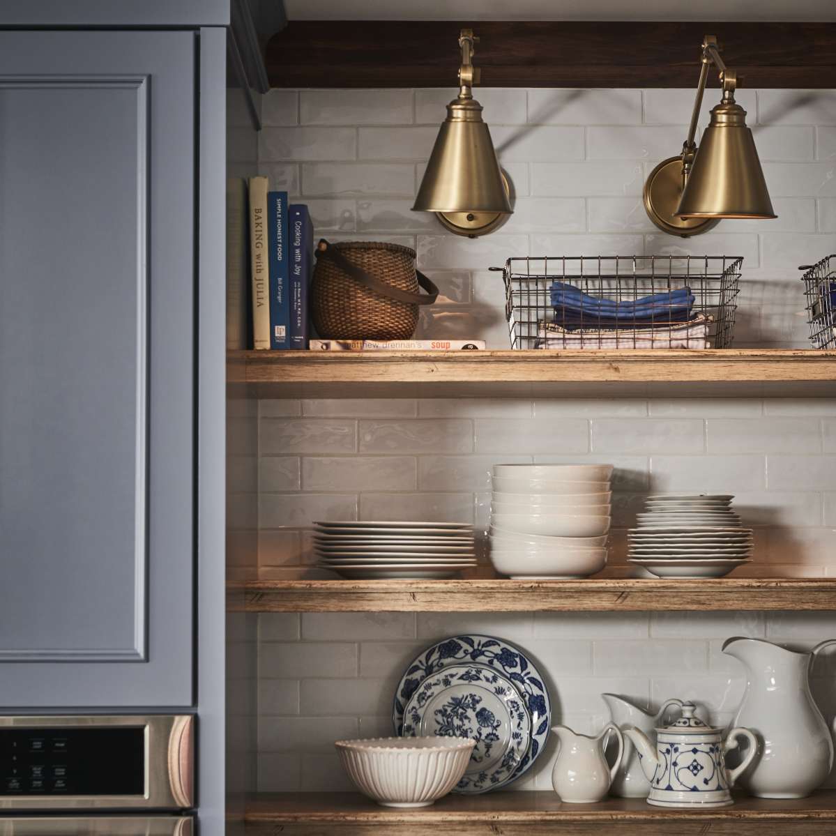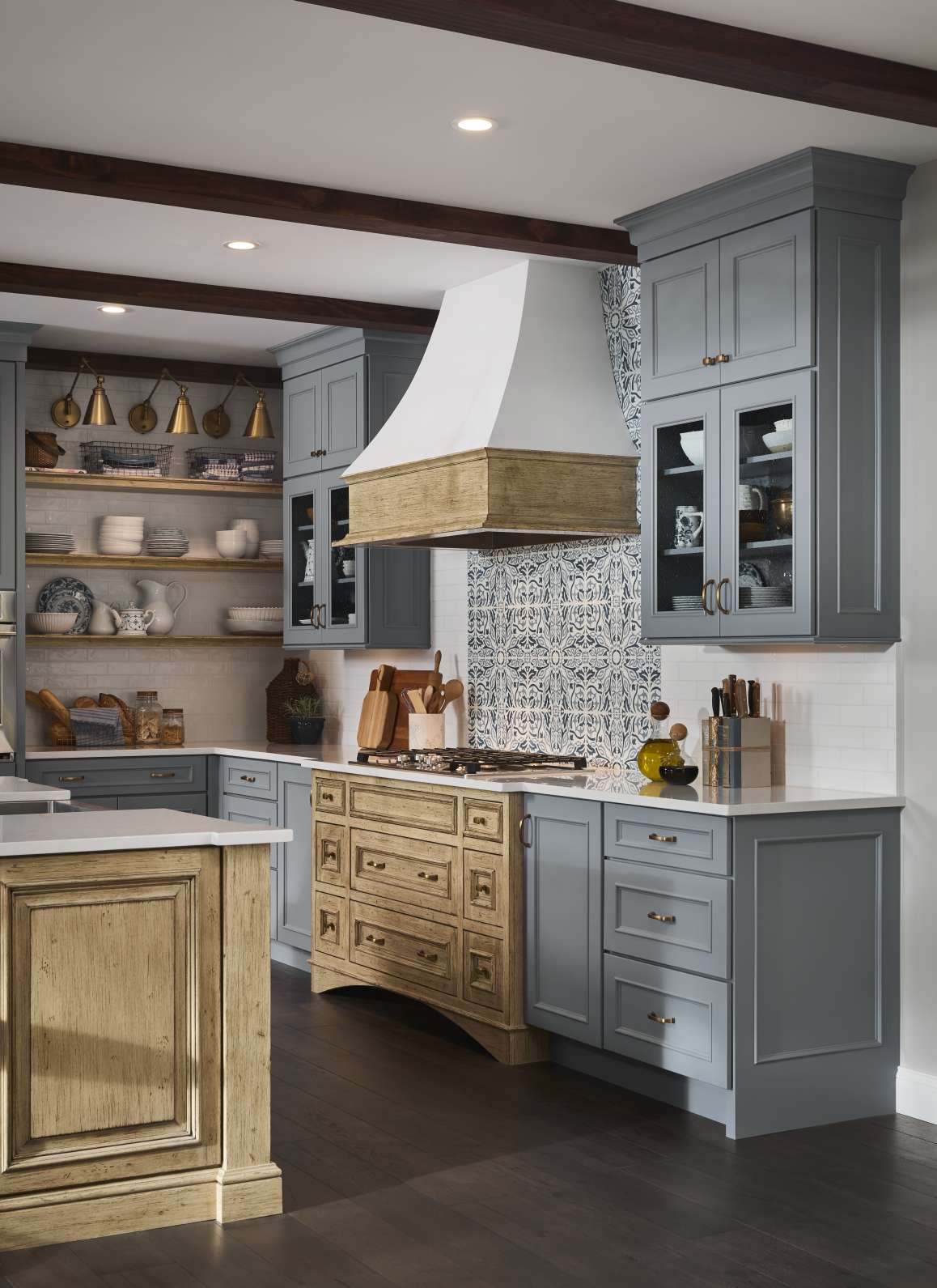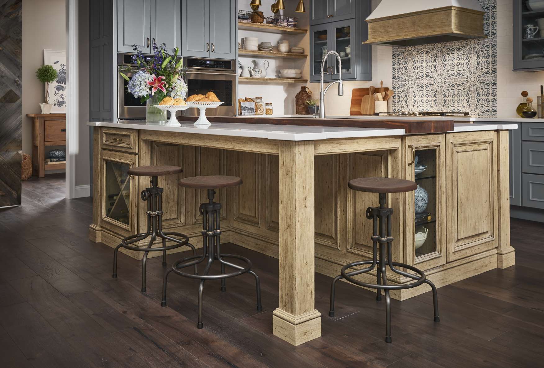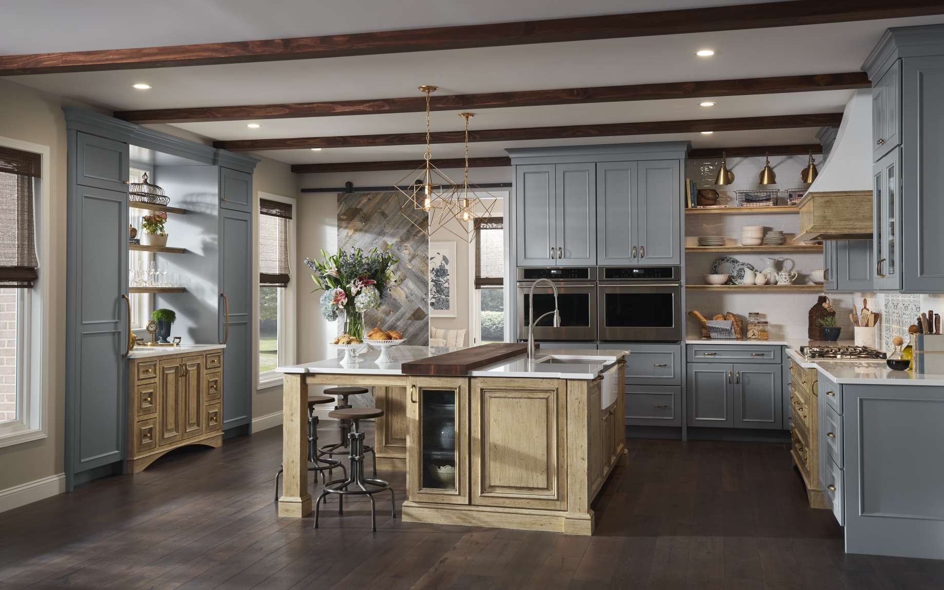 Bright modern touches elevate the warm rustic finishes and furniture details in this twist on the typical Farmhouse kitchen.