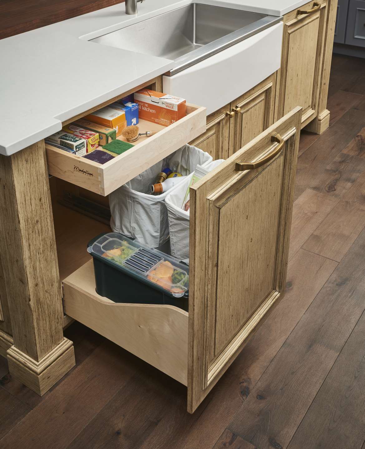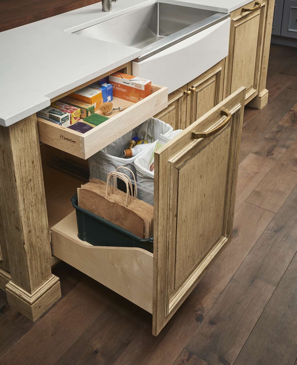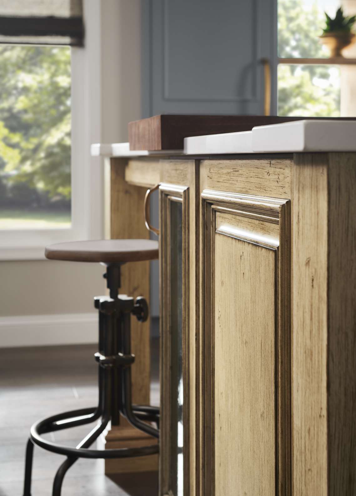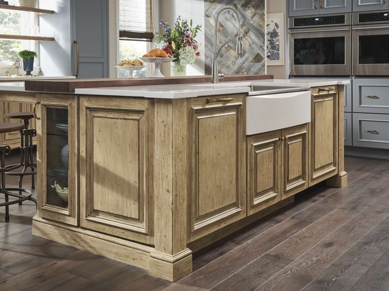 Bright modern touches elevate the warm rustic finishes and furniture details in this twist on the typical Farmhouse kitchen.